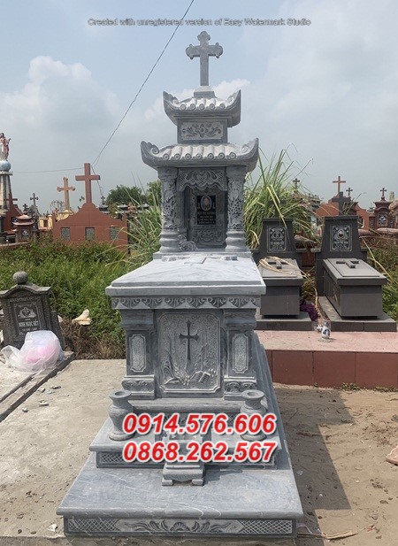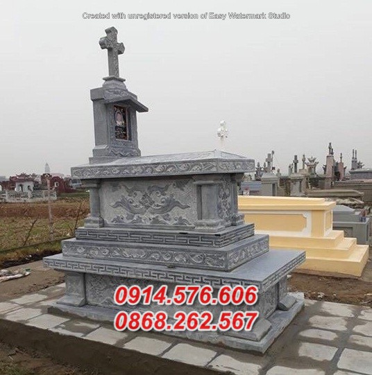 01 Mộ nghĩa trang gia đình dòng lăng mồ mả đá xanh công giáo đạo thiên chúa đẹp bán tại Tiền Giang