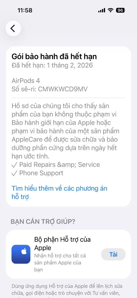 Như tiêu đề tui muốn bán Airpod4 ANC - thegioididong hết BH từ 01/02/2026 giá 2tr1