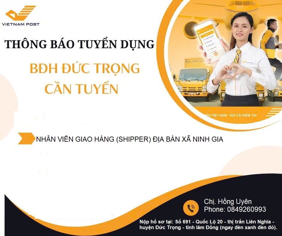 Đức Trọng BƯU ĐIỆN ĐỨC TRỌNG TUYỂN NHÂN VIÊN GIAO HÀNG ĐI LÀM NGAY TẠI NINH GIA