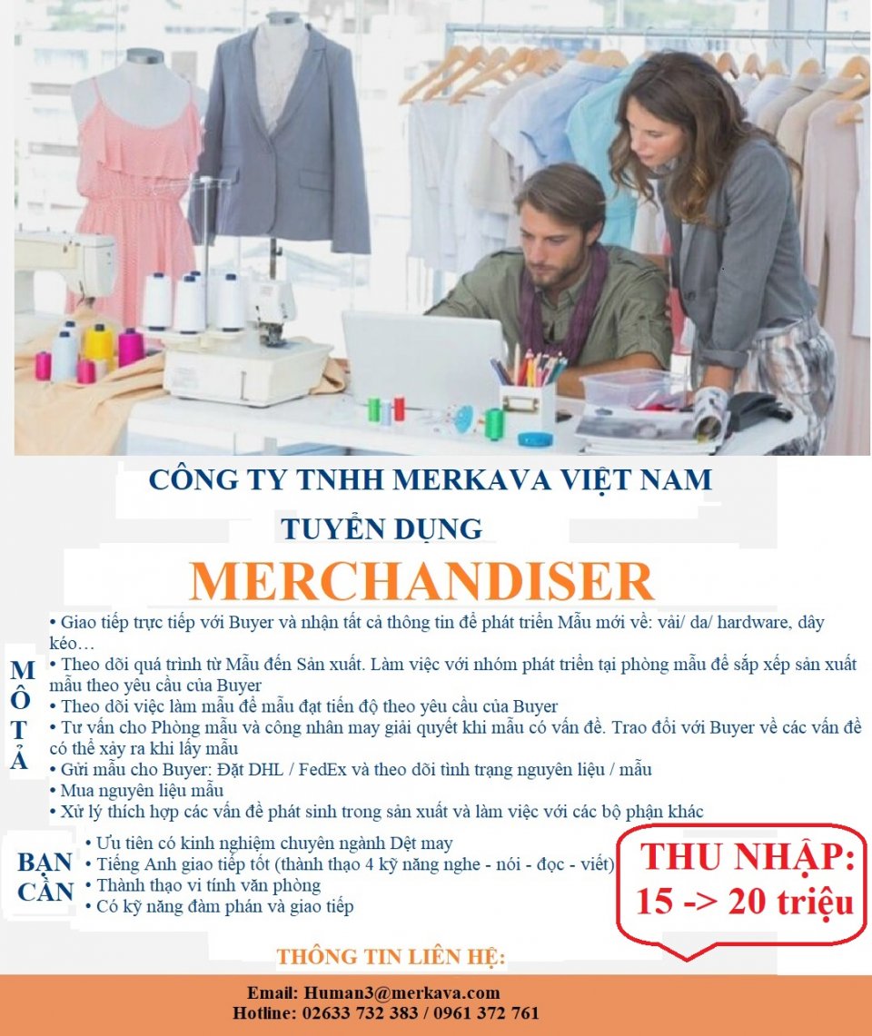 Công ty may CẦN TUYỂN GẤP 02 BẠN MERCHANDISER.