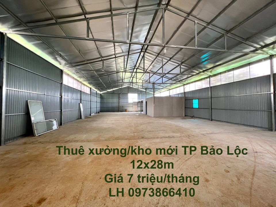 Cho Thuê Kho/Xưởng 336m2 Phường Lộc Tiến, TP Bảo Lộc, 7 triệu/tháng - Diện tích 12x28-336m2 ( có 1 nhà vệ sinh, 1 phòng ở lại, khu nấu ăn) - Sân rộng xe đi vào thoải mái - Giá 7 triệu/tháng