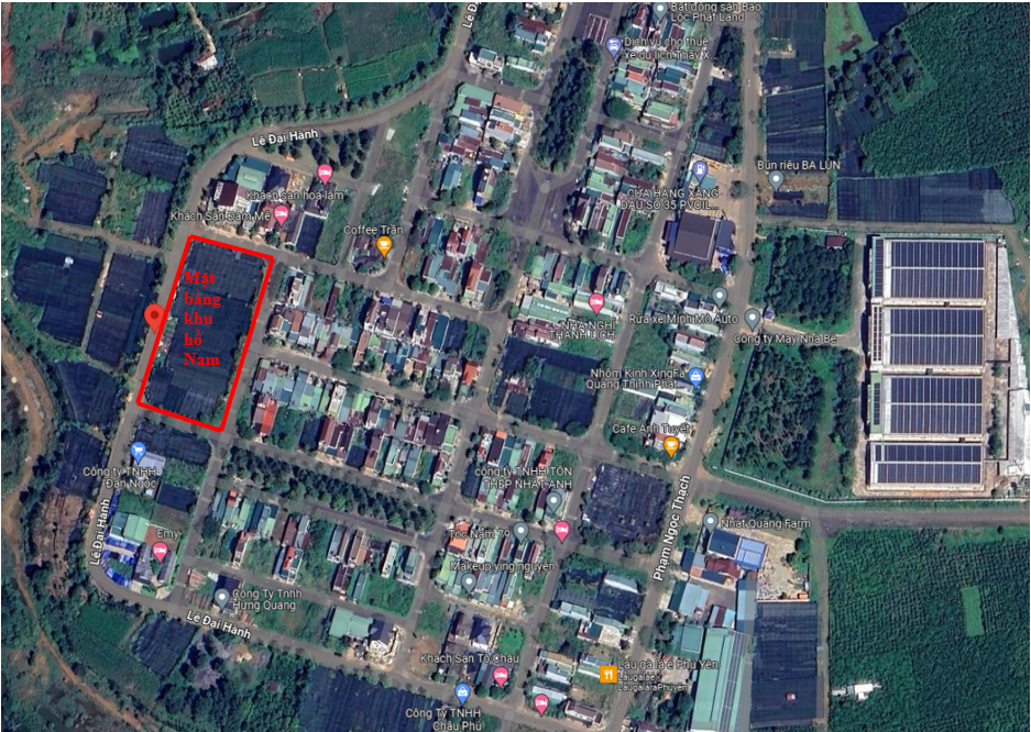 2. Cho thuê mặt bằng khu đất 4 mặt tiền đường nhựa lớn (đường Lê Đại Hành), rộng 5,700 m2 tại Khu Hồ Nam Phương Bảo Lộc.