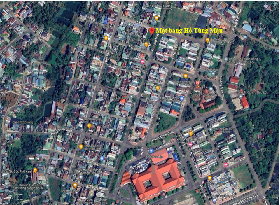 Mặt tiền Hồ Tùng Mậu (mặt bằng trống chưa xây dựng), cách Chợ Bảo Lộc chỉ 300 m.