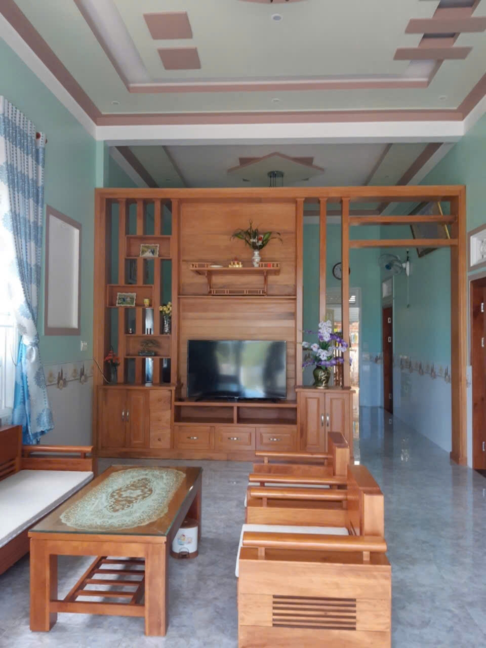 Nhà mái Thái 3 phòng ngủ, phòng khách, bếp rộng rãi. Đường ôtô. Sân đậu xe hơi, có vườn trồng rau nuôi gà. Nhà view thoáng yên tĩnh, nhìn ra hồ Nam phương cách 50m.