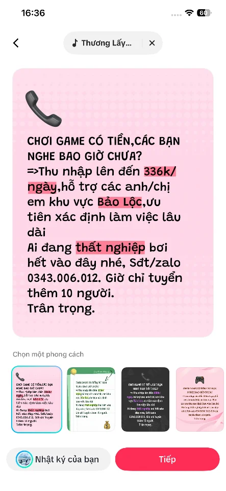 N Nguyễn Văn Tuấn - BL Hôm qua, lúc 17:16 #1 Anh/chị em nào rảnh rỗi tại Bảo Lộc-Lâm Đồng muốn chơi game có tiền thì ib ngay nhé. Không đầu tư vốn, không cọc gì cả. Người thực việc thực nhé. Trân trọng Ảnh đính kèm IMG_1578.webp 18.6 KB · Đọc: 538 IMG_1579.webp 51.1 KB · Đọc: 32