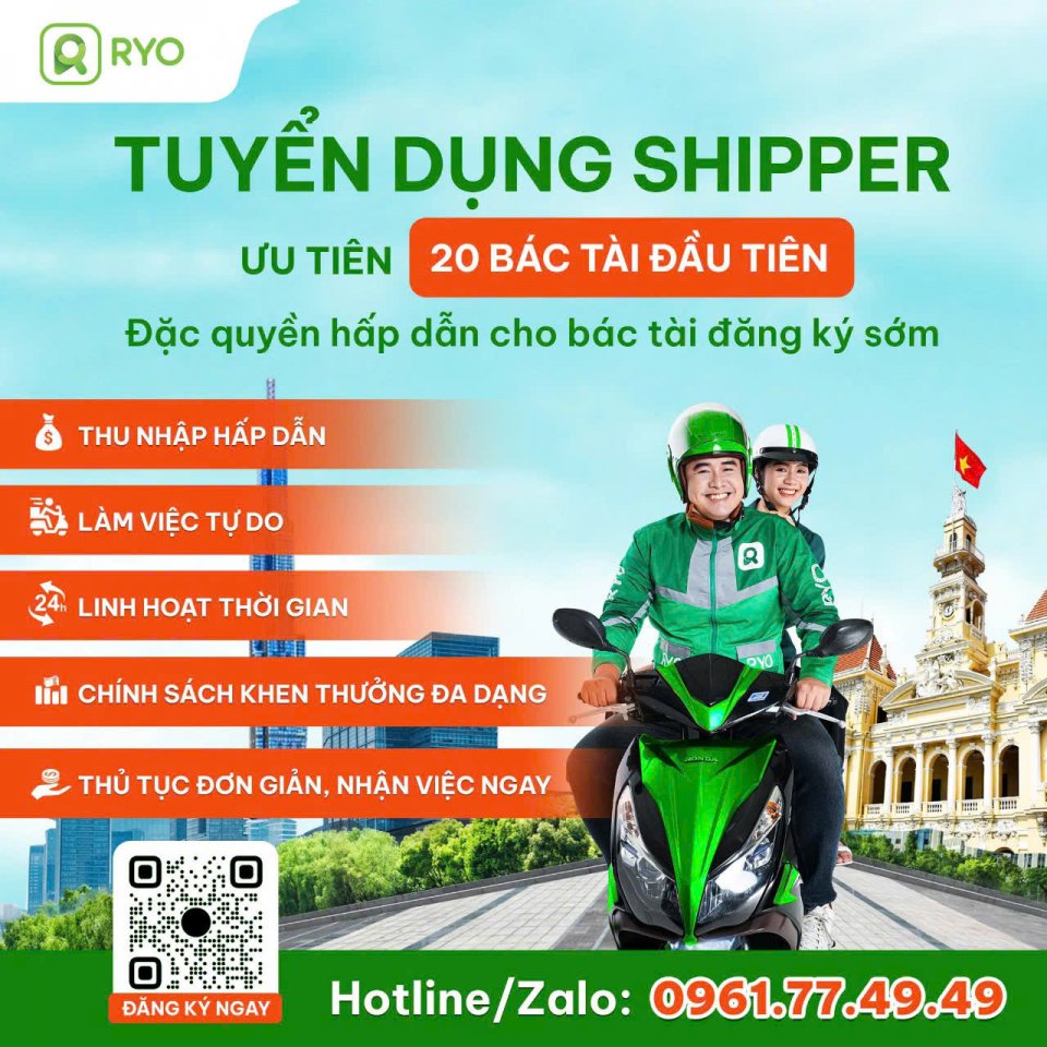 ĐĂNG KÝ TRỞ THÀNH TÀI XẾ RYO THU NHẬP LÊN ĐẾN 10_15 TRIỆU VND