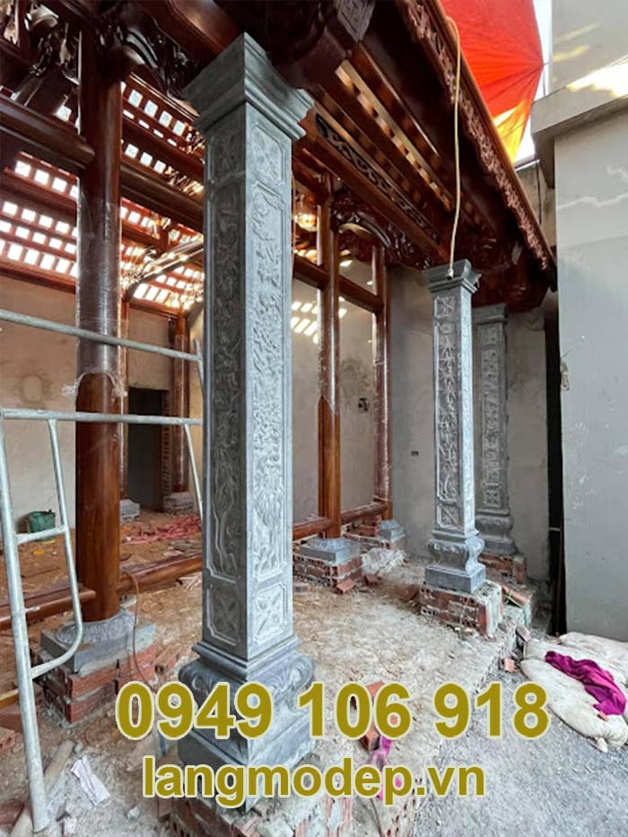 Cột đá hiên nhà thờ họ là hạng mục giúp công trình giữ được sự chắc chắn, an toàn cho không gian thờ tự. Mẫu cột này sở hữu nhiều ưu điểm nổi bật như độ bền cao, độ cứng tốt và mang đến tính thẩm mỹ vượt trội. Có thể nói cột đá nhà thờ họ có mục đích chính của chúng dùng nâng đỡ phần mái công trình tạo sự kiên cố bền vững cho kiến trúc nhà thờ họ. Ngoài ra, trên các mẫu cột có những hoa văn, họa tiết độc đáo tạo điểm nhấn cho không gian thờ tự thêm phần cổ kính, sang trọng và tính thẩm mỹ cao.
