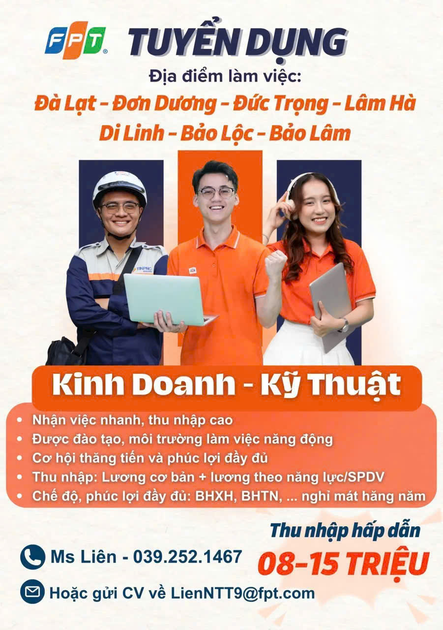 Bảo Lộc FPT Telecom Lâm Đồng- CN Bảo Lộc tuyển dụng T9