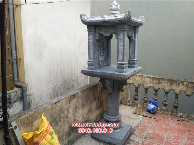Mẫu cây hương thờ thiên một mái làm bằng chất liệu đá xanh đen nguyên khối.