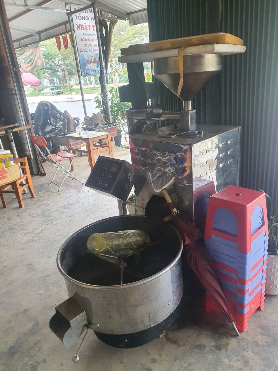 Bên mình cần bán máy rang cà phê bằng điện 220V. Máy rang tầm 10-15 phút được 1 mẻ 10 kg. Giá chỉ 35 triệu. Alo 0977056788