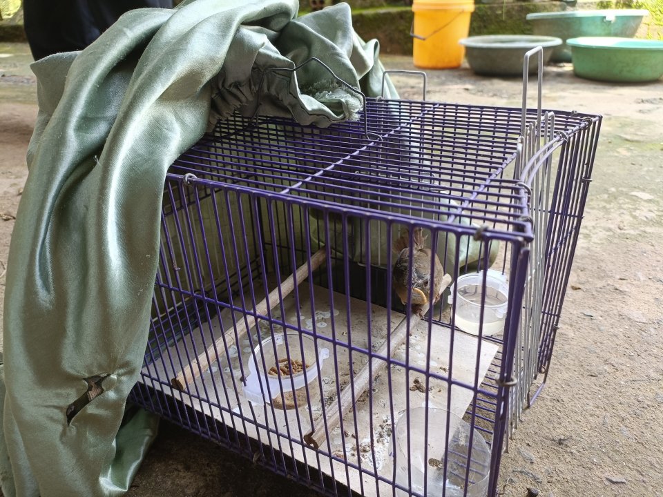 Tiểu mi trống bổi đang vào cám. Chim nuôi 1 tuần lồng ,tố chất .đang thay lông.Gịong to ,hót nhiều giọng, nết dạn Giá 400k. Sdt 0343607100. Chim đậu bảo lộc