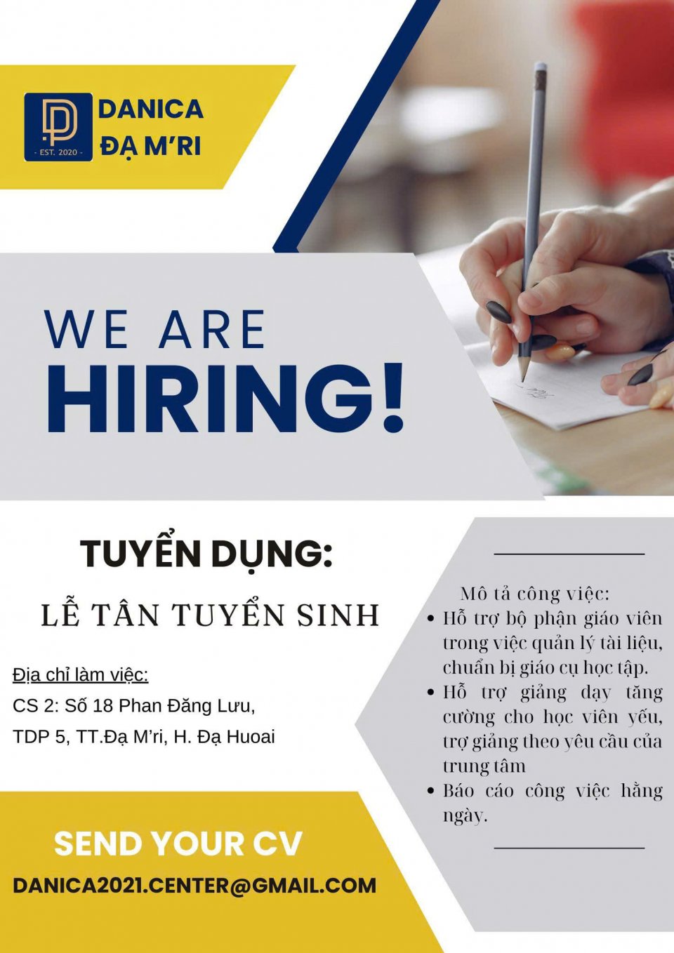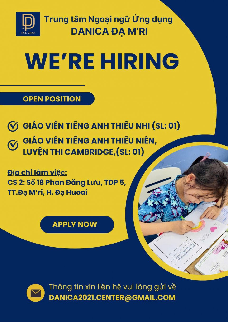 Trung tâm ngoại ngữ ứng dụng DANICA ĐẠ M'RI tuyển dụng: