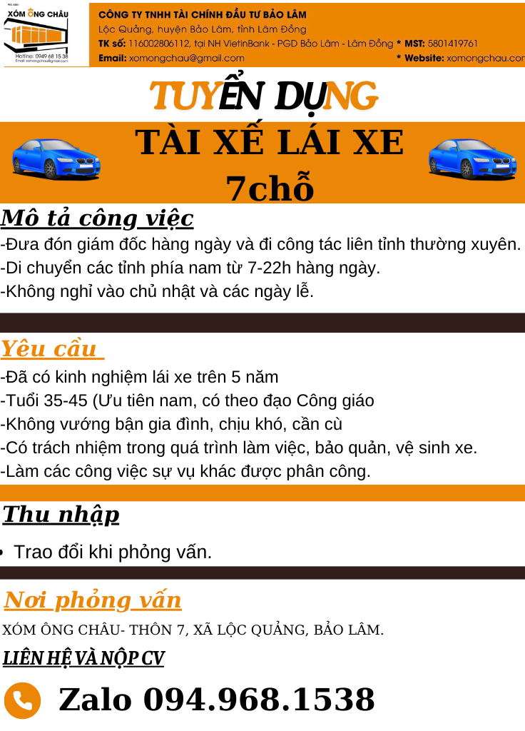 Bảo Lộc Tuyển tài xế lái xe giám đốc