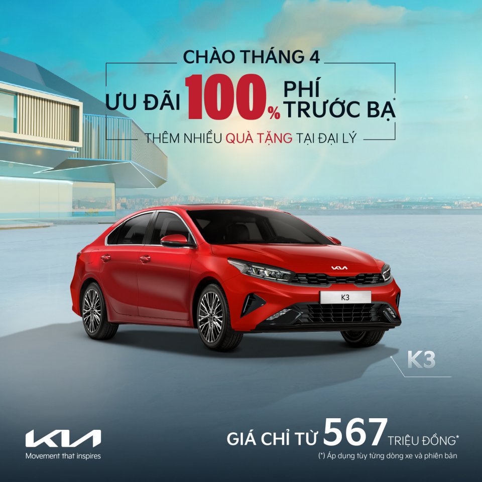 KIA ƯU ĐÃI 100% PHÍ TRƯỚC BẠ CÙNG NHIỀU ƯU ĐÃI HẤP DẪN TRONG THÁNG 4/2023