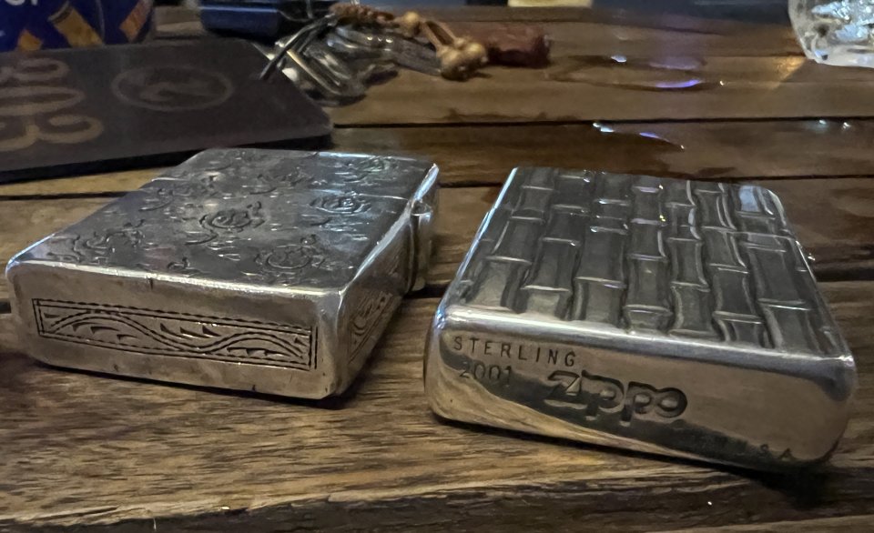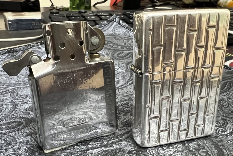 Chào mọi ng , mình cần bán 1 cây Zippo bạc khối trong hình : zip sản xuất năm 2001 , ruột vỏ trùng , ngoại hình đẹp , dập nổi họa tiết tre ( tượng trưng cho tính quân tử , và nếu bạn nào chơi đủ sâu sẽ phân biệt đc nét dập nổi của hãng với những chiếc bạc trơn thương lái mua về khắc CNC để bán giá cao hơn nhé )