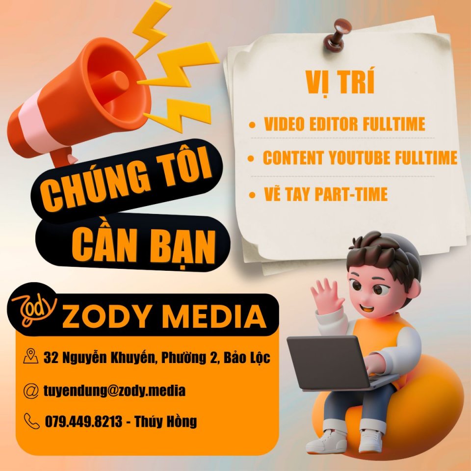 Bảo Lộc ZODY MEDIA TUYỂN DỤNG NHIỀU VỊ TRÍ - 079.449.8213 (Thúy Hồng)